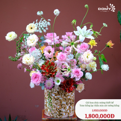 GIỎ HOA CHÚC MỪNG THIẾT KẾ TONE HỒNG LẠC THẦN MIX CÁC TƯỜNG HỒNG